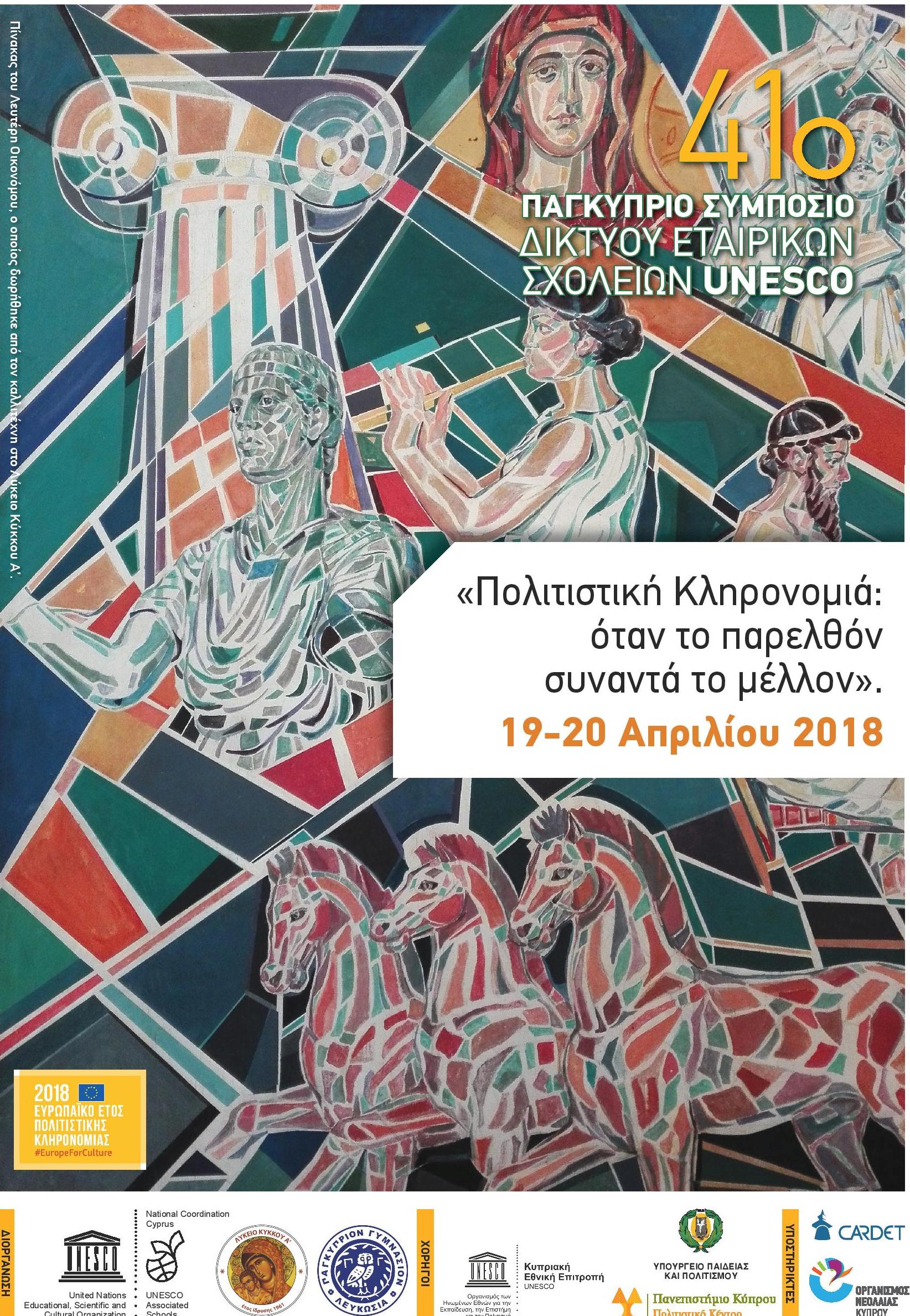 Η Κυπριακή Εθνική Επιτροπή UNESCO, το Παγκύπριο Γυμνάσιο και το Λύκειο Κύκκου Α’ συνδιοργανώνουν στις 19 και 20 Απριλίου 2018, στη Λευκωσία, το 41o Παγκύπριο Συμπόσιο του Δικτύου Εταιρικών Σχολείων UNESCO (ASPnet), με θέμα «Πολιτιστική Κληρονομιά: όταν το παρελθόν συναντά το μέλλον», με τη συμμετοχή συνολικά 350 μαθητών και εκπαιδευτικών Δημοτικής και Μέσης Εκπαίδευσης από σχολεία της Κύπρου και της Ελλάδας.